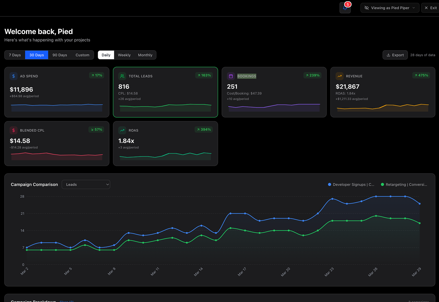 - We set KPIs before we spend a dollar. If we're not hitting them, we diagnose before we bill a performance bonus - that's the structure. You'll know exactly what's working and what isn't every week, not at the end of a quarter.